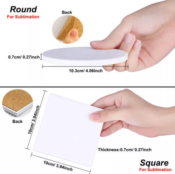 Style have square and round, glossy apperance, 10.3cm diameter fit for many cups, also you can printing as you want, really nice.